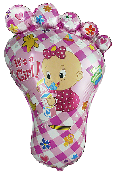 Фолиев балон бебешко краче – foot girl с розов дизайн и надпис it’s a girl. Символичен и много разпознаваем елемент за бебешки празници. Изработен от висококачествено фолио с ясен и наситен печат. Големият размер го прави силен визуален акцент за изписване, погача, baby shower и украси за новородено момиче. Подходящ за пълнене с хелий или въздух. Подходящ както за самостоятелна декорация, така и за балонени аранжировки и фотокътове.