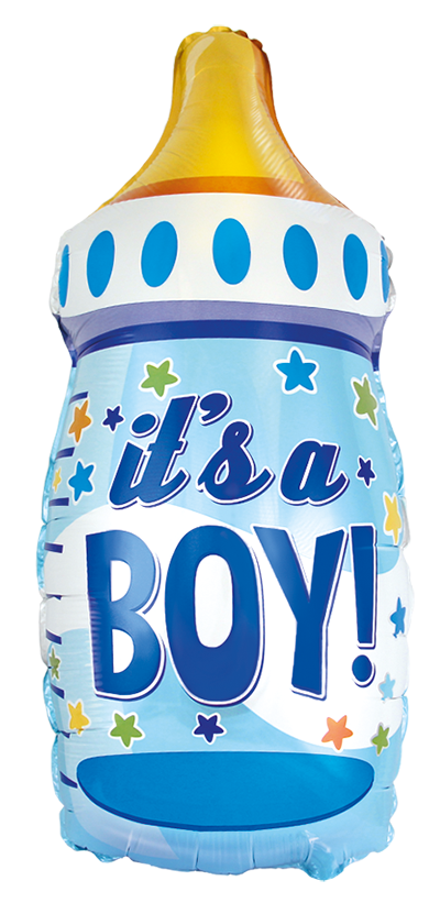 Фолиев балон бебешко шише – bottle boy със син дизайн и надпис „It’s a Boy!“. Изработен от висококачествено фолио с ясен и наситен печат. Големият размер го прави силен визуален акцент за изписване, погача, baby shower и украси за новородено момче. Подходящ за пълнене с хелий или въздух. Отличен избор както за самостоятелна декорация, така и за балонени аранжировки и фотокътове.