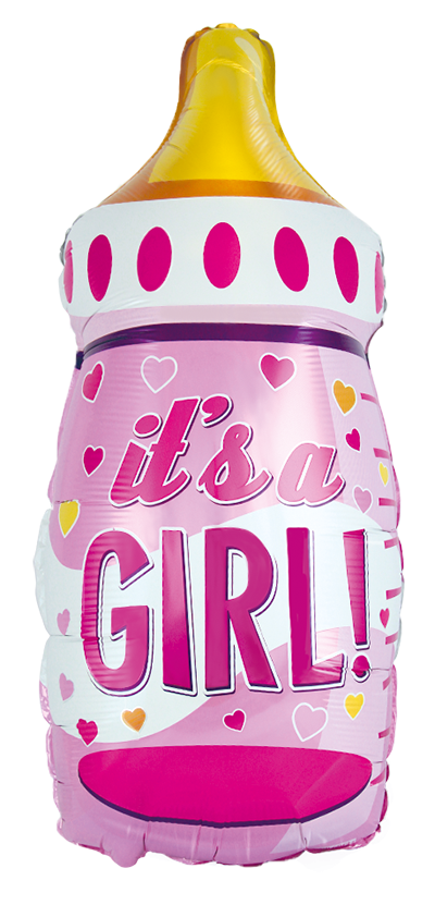 Фолиев балон бебешко шише – bottle girl с розов дизайн и надпис „It’s a Girl!“. Изработен от висококачествено фолио с ясен и наситен печат. Големият размер го прави силен визуален акцент за изписване, погача, baby shower и украси за новородено момиче. Подходящ за пълнене с хелий или въздух. Отличен избор както за самостоятелна декорация, така и за балонени аранжировки и фотокътове.