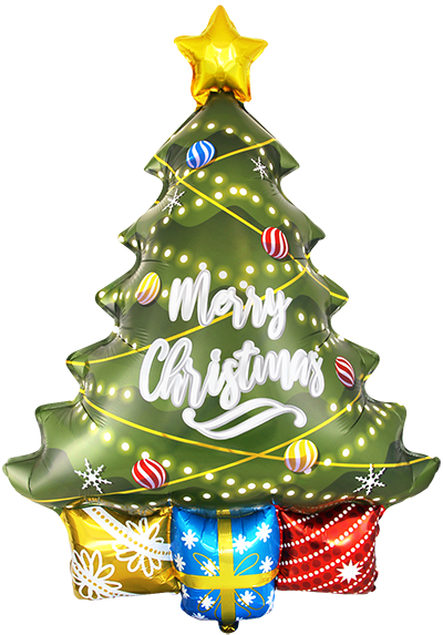 Фолиев балон коледна елха – xmas tree с празничен дизайн, декорации и подаръци. Един от най-силните и разпознаваеми символи на Коледа. Изработен от висококачествено фолио с ясен и наситен печат. Големият размер го прави впечатляващ визуален акцент за коледни украси, витрини, тематични партита и фотокътове. Подходящ за пълнене с хелий или въздух. Отличен избор за самостоятелна декорация или комбиниране с други коледни балони.