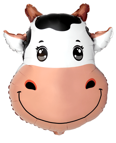 Фолиев балон с форма на глава на крава, изработен от висококачествено фолио с ясен и прецизен печат. Подходящ за пълнене с хелий или въздух. Чудесен избор за детски рождени дни, тематични партита и украси с животински мотиви.