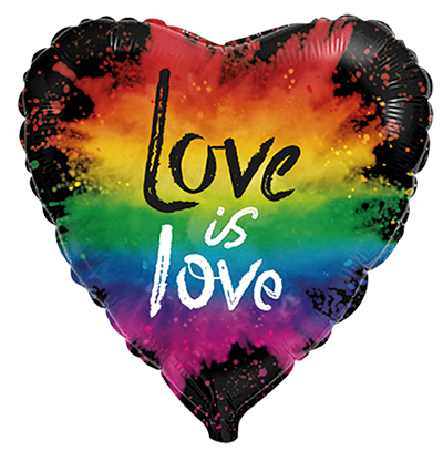 Фолиев балон Сърце Love Is Love от Flexmetal, изработен от висококачествено фолио с ясен и прецизен печат. Подходящ за пълнене с хелий или въздух. Подходящ за празници на любовта, Свети Валентин, Pride събития и тематични украси.