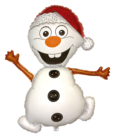 Фолиев балон снежен човек – snowman с весел коледен дизайн и шапка на Дядо Коледа. Класически символ на зимните и коледните празници. Изработен от висококачествено фолио с ясен и наситен печат. Големият размер го прави силен визуален акцент за коледни украси, витрини, тематични партита и фотокътове. Подходящ за пълнене с хелий или въздух. Отличен избор за самостоятелна декорация или комбиниране с други коледни балони.