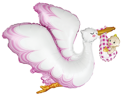 Фолиев балон щъркел с бебе – stork baby girl с нежен розов дизайн, символ на нов живот и радостно събитие. Изработен от висококачествено фолио с ясен и наситен печат. Големият размер го прави силен визуален акцент за изписване, погача, baby shower и украси за новородено момиче. Подходящ за пълнене с хелий или въздух. Отличен избор както за самостоятелна декорация, така и за балонени аранжировки и фотокътове.