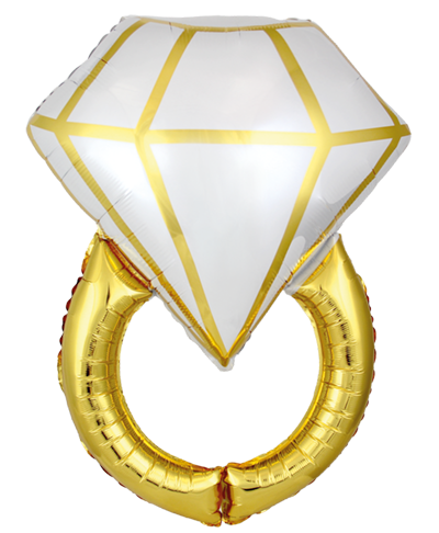 Фолиев балон златен пръстен – ring gold с елегантен дизайн на диамант и златен пръстен. Класически символ на годеж и сватба. Изработен от висококачествено фолио с ясен и наситен печат. Големият размер го прави силен визуален акцент за сватбени украси, предложения за брак, фотокътове и тематични декорации. Подходящ за пълнене с хелий или въздух. Отличен избор за самостоятелна декорация или комбиниране с балони булка и младоженец.