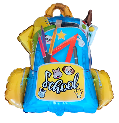 Фолиев балон ученическа раница – backpack school с цветен и забавен дизайн, създаден за училищни тържества и детски празници. Подходящ за първия учебен ден, back to school партита и тематични украси. Изработен от висококачествено фолио с ясен и наситен печат. Големият размер го прави силен визуален акцент за декорации, фотокътове и балонени аранжировки. Подходящ за пълнене с хелий или въздух.