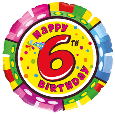 Кръгъл фолиев балон чрд 6 години с цветен и ярък дизайн и голяма цифра 6 в центъра. Подходящ за украса на детски рожден ден и тематично парти за 6-ти рожден ден. Размер 18"/45 см – идеален за пълнене с хелий и използване в балонени букети и декорации. Подходящ и за пълнене с въздух. Балонът е произведен от Flexmetal и разполага с всички сертификати, изисквани от ЕС.