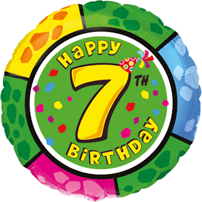 Кръгъл фолиев балон чрд 7 години с цветен дизайн и голяма цифра 7 в центъра. Подходящ за украса на детски рожден ден и тематично парти за 7-ми рожден ден. Размер 18"/45 см – идеален за пълнене с хелий и използване в балонени букети и декорации. Подходящ и за пълнене с въздух. Балонът е произведен от Flexmetal и разполага с всички сертификати, изисквани от ЕС.