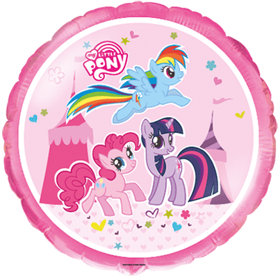Кръгъл фолиев балон My Little Pony с цветен дизайн и любимите герои от популярната анимация. Подходящ за детски рожден ден и тематично парти с пони. Размер 18"/45 см – идеален за пълнене с хелий и използване в балонени букети и декорации. Подходящ и за пълнене с въздух. Балонът е произведен от Flexmetal и разполага с всички сертификати, изисквани от ЕС.