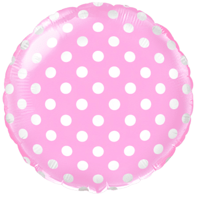 Кръгъл фолиев балон розов с бели точки с класически и нежен дизайн. Подходящ за бебешко парти, рожден ден, тематична украса или комбиниране в балонени аранжировки. Размер 18"/45 см – идеален за пълнене с хелий и използване в букети и декорации. Подходящ и за пълнене с въздух. Балонът е произведен от Flexmetal и разполага с всички сертификати, изисквани от ЕС.