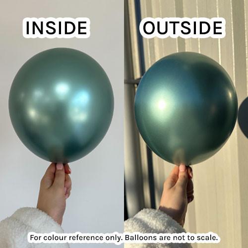 Подходящи са за модерни декорации, природни теми, рождени дни, фирмени събития и лъскави балонени композиции. Цветът е плътен и свеж, със силен хром ефект в зелен нюанс.