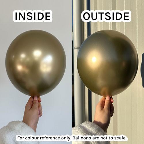 Подходящи са за луксозни декорации, юбилеи, сватби, новогодишни партита и ефектни балонени композиции. Цветът е наситен и празничен, със силен хром ефект в златен нюанс.