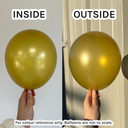 Подходящи са за сватби, луксозни събития, юбилеи, стилни декорации и професионални балонени композиции. Цветът е мек и елегантен, с фин металиков блясък в нюанс Dorato. Този размер не е подходящ за летене с хелий.