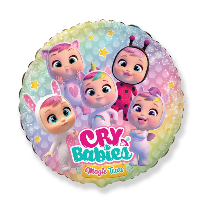 Кръгъл фолиев балон Cry Babies Magic Tears с цветен и нежен дизайн на любимите бебета от поредицата. Подходящ за детски рожден ден и тематично парти Cry Babies. Размер 18"/45 см – идеален за пълнене с хелий и използване в балонени букети и декорации. Подходящ и за пълнене с въздух. Балонът е произведен от Flexmetal и разполага с всички сертификати, изисквани от ЕС.