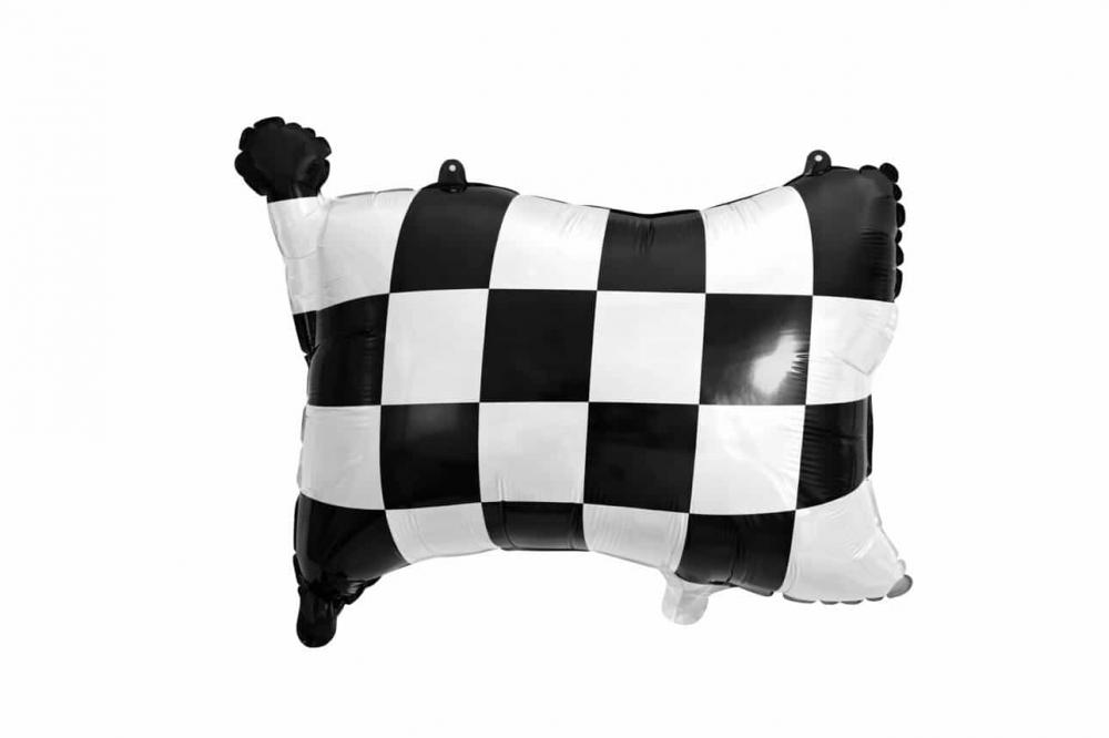 Фолиев балон карирано знаме 75 см с класически черно-бял дизайн, символ на финал и победа. Подходящ за състезателни и автомобилни партита, рожден ден с автомобилна тематика или спортни събития. Големият размер го прави силен акцент в декорацията и може да се използва самостоятелно или като част от балонена аранжировка. Подходящ за пълнене с хелий или въздух. Балонът е произведен от Flexmetal и разполага с всички сертификати, изисквани от ЕС.