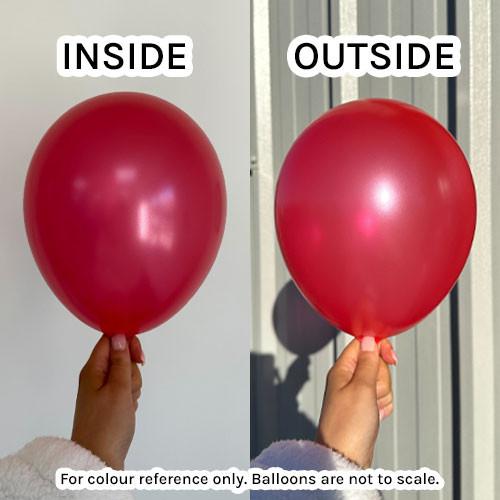 Подходящи са за Свети Валентин, рождени дни, романтични декорации, празнични партита и ефектни балонени композиции. Цветът е ярък и наситен, с красив металически блясък в червен нюанс.