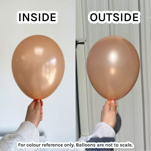 Подходящи са за нежни декорации, baby shower, сватби, рождени дни и стилни балонени композиции. Цветът е топъл и мек, с елегантен металиков блясък в прасковен нюанс. Този размер не е подходящ за летене с хелий.