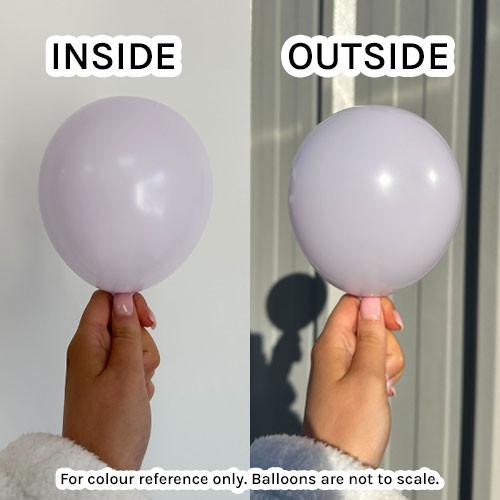 Подходящи са за пролетни декорации, baby shower, рождени дни, нежни тематични партита и професионални балонени аранжировки. Цветът е мек и деликатен, в светъл пастелен лилав нюанс. Този размер не е подходящ за летене с хелий.